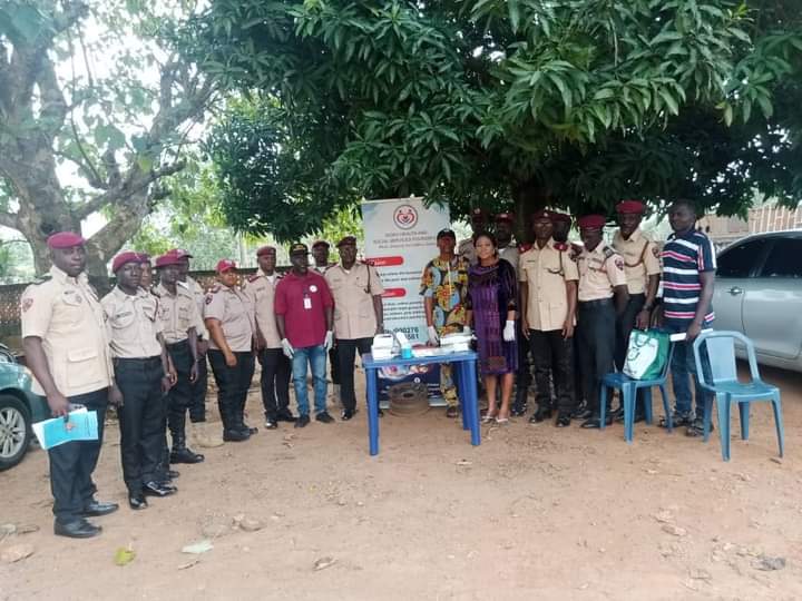 The Executive Director of Idoko Health & Social Services Foundation, Prince Onuche Zico Isaac, alongside his team, recently embarked on a sensitisation tour of the Federal Road Safety Commission (FRSC) Kabba Office in Kogi State. On hand to receive the team was the Unit Commander, O. A. Adeyanju, who welcomed them warmly and urged his officers to pay close attention to the health tips being offered.